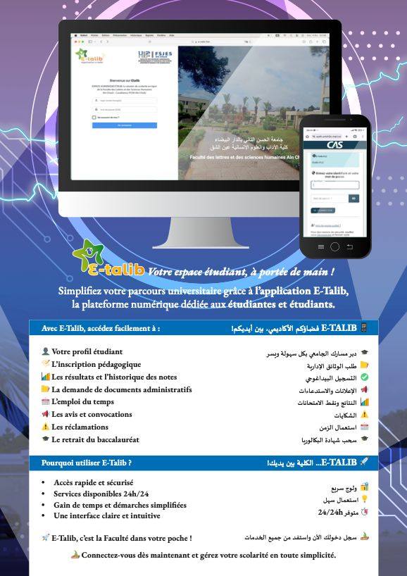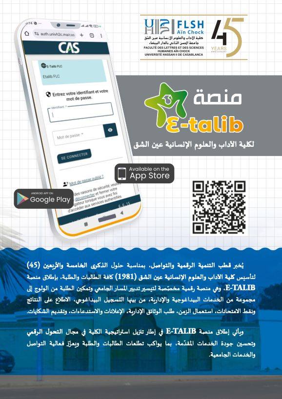 يعلن عميد كلية الآداب والعلوم الإنسانية عين الشق عن فتح باب الترشيح لشغل منصب شاغر لرئيس المصلحة التالية: